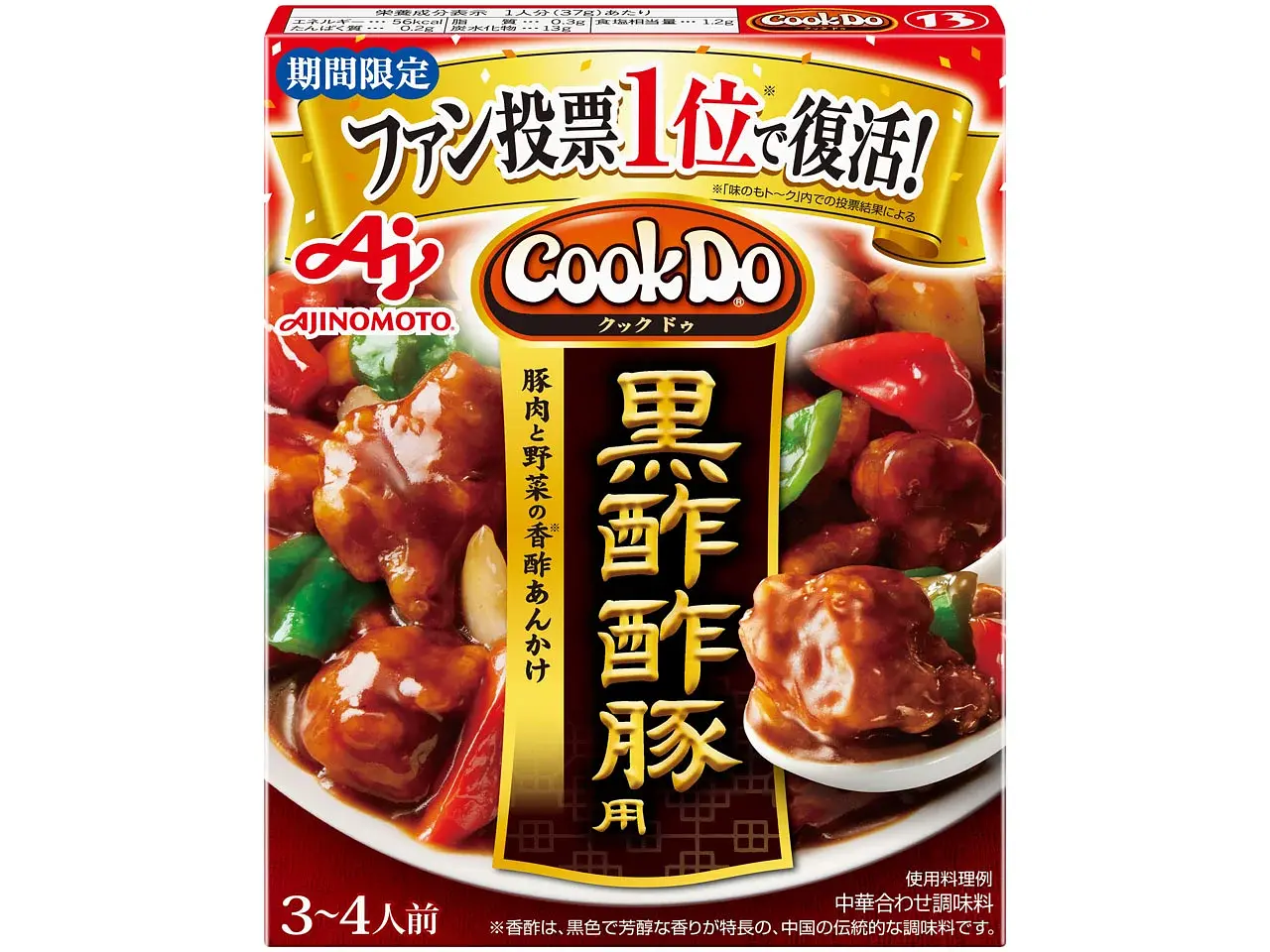 ファン投票1位で復活!黒酢を配合したコクのある酸味と上品な甘味のあるあんが具材にしっかり絡むので、深みのある味わいに仕上がります。