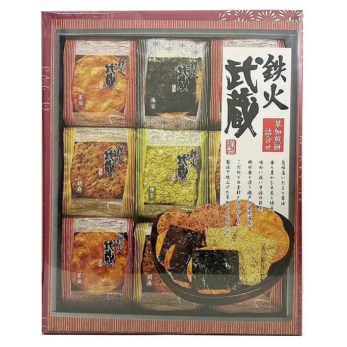 昔ながらの草加堅焼せんべいの4つの味を詰め合わせたご進物です。お米の風味を生かした堅焼きせんべいを醤油、胡麻、抹茶、海苔の4種の味で仕上げた、ご進物です。