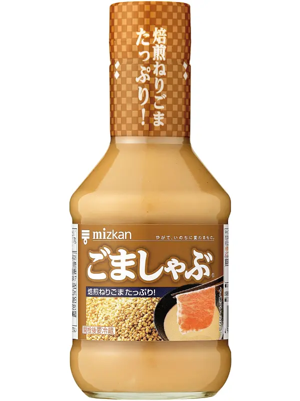 ねりごま(国内製造)、醸造酢、みそ、ごま油、しょうゆ(小麦を含む)、果糖ぶどう糖液糖、食塩、砂糖、酵母エキス、香辛料(大豆を含む)/調味料(アミノ酸等)、増粘多糖類、香料、香辛料抽出物、甘味料(スクラロース)