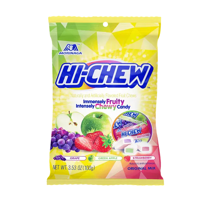 天然および人工のフレーバーのフルーツチュー。天然および人工フレーバー。グルテンフリー。非常にフルーティー。非常に噛みごたえのあるキャンディー。噛むたびにフレーバーが生き生きとします。フレーバーの二重層。噛むとフレーバーが広がります。最後の一口までハイチュー。本物のフレーバーの香りをお楽しみいただけます。合成着色料は使用していません。