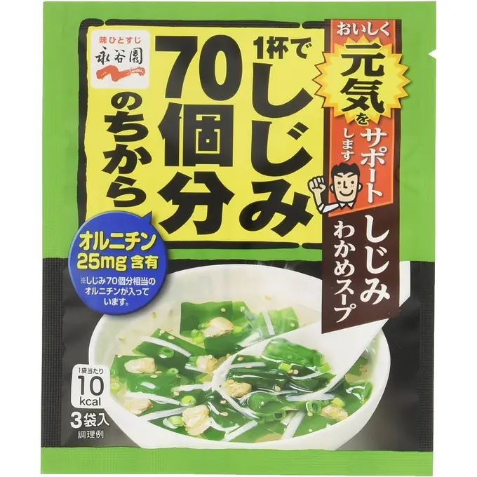 1杯でしじみ70個分相当のオルニチンが摂取できるしじみわかめスープです。
