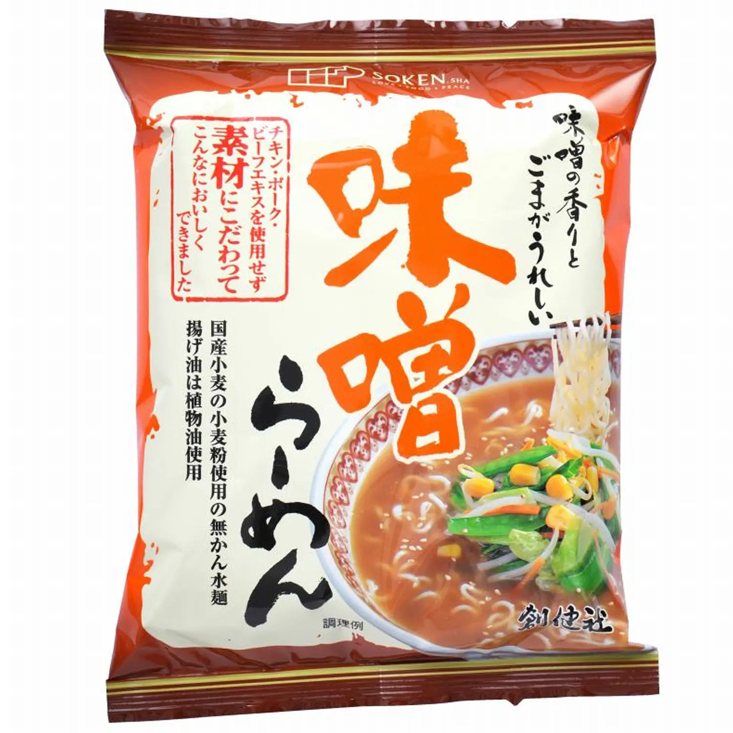 油揚げめん(小麦粉(小麦(国産))、植物油脂(パーム油)、澱粉、植物性たん白、食塩)、粉末味噌、食塩、酵母エキス、砂糖、香辛料、白ごま、デキストリン、粉末醤油、野菜粉末、ホタテエキス、野菜エキス、乾燥ねぎ、麦芽エキス/酸化防止剤(ビタミンE)、(一部に小麦・大豆・ごまを含む)