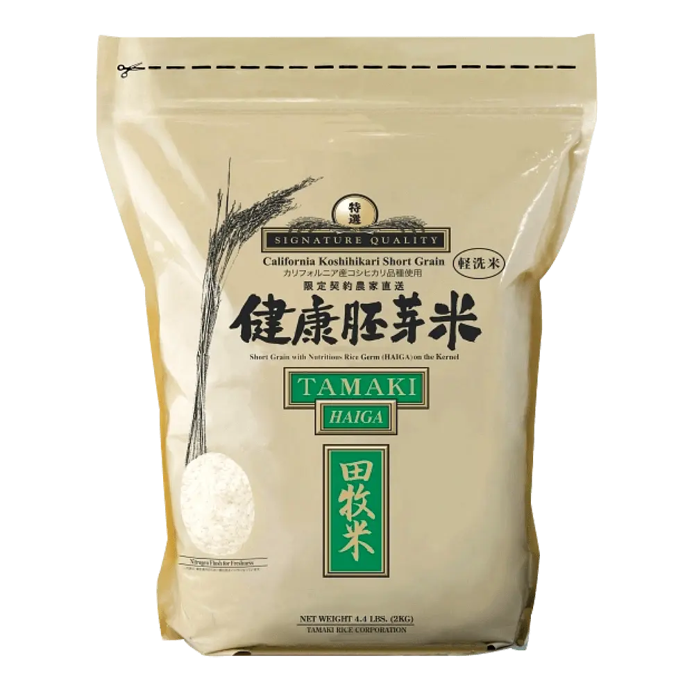 こしひかりの米粒を慎重に精米し、米胚芽をそのまま残した製品です。Tamaki Haigaは、日本で購入した特定の精米機器を使用して製造されています。Tamaki Haigaは、日本の白米と似たように炊けますが、米粒の自然なビタミンや栄養素を多く保持しています。この製品は、白米を好むが、玄米に似た栄養的な利点を得たいと考えるお客様に最適です。