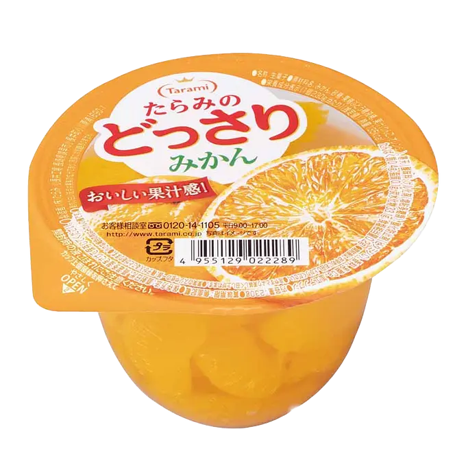 みかん(中国)、砂糖・果糖ぶどう糖液糖、果汁(りんご、オレンジ)、寒天/酸味料、ゲル化剤(増粘多糖類)、酸化防止剤(ビタミンC)、香料、乳酸Ca、加工デンプン