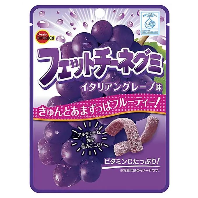 Sugar (manufactured in Japan and Thailand), syrup, grape juice concentrate, gelatin/acidifier, sorbitol, calcium carbonate, flavor, vitamin C, gelling agent (pectin), color (anthocyanin), emulsifier, mannitol