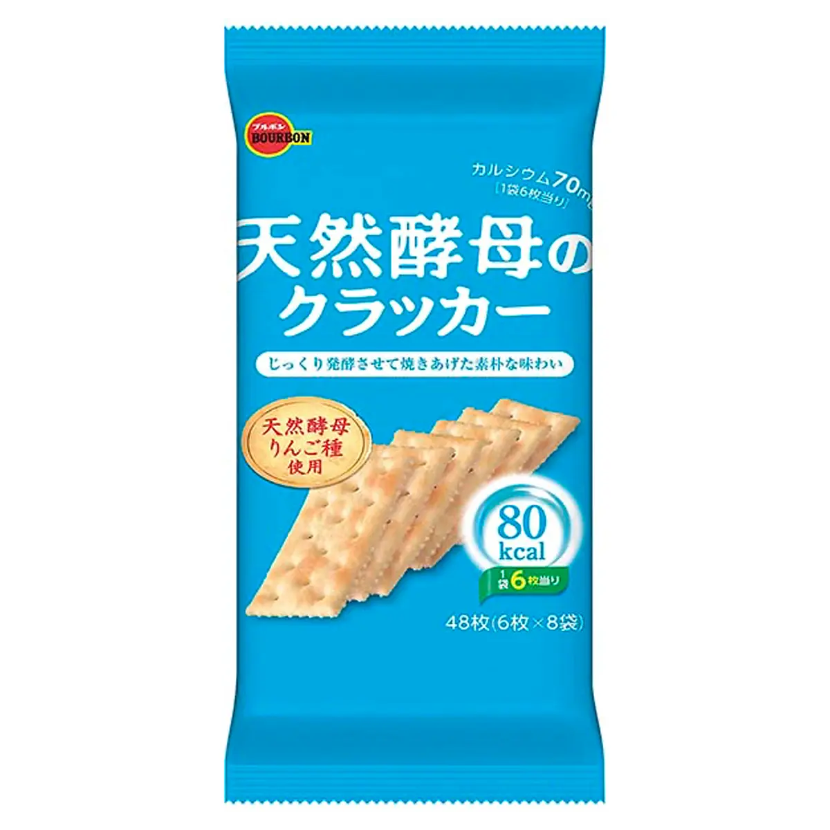 The crackers have a unique deep flavor and are baked by slow fermentation using natural yeast apple seeds made from wild yeast living in nature and plant-based lactic acid bacteria. 6 crackers per package contain 80 kcal and 70 mg of calcium.