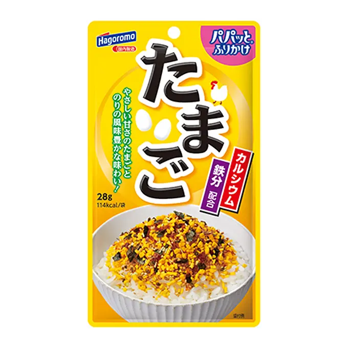 From the "Papatto Furikake" series, which features a wide variety of flavors, from the standard flavors that children like to the spicy series that adults also like, as well as calcium and iron content, this is "Egg Furikake". This product is richly flavored with gently sweetened eggs and nori seaweed. It contains calcium and iron, both of which tend to be in short supply.
