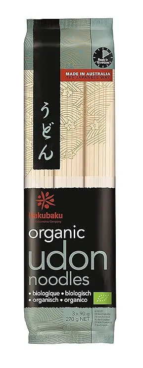 Japanese Udon noodles can be round, square or flat with a texture suitable for more hearty dishes. They are made from wheat flour, salt and water.Although Udon noodles can be served cold, these thicker, soft, but slightly chewy, white noodles are usually served hot with various toppings, added to a hotpot dish and cooked with other ingredients, or sometimes included in a curry soup.Udon can replace soba in traditional soba recipes and some dishes even mix soba and udon noodles to give a variety of textures.