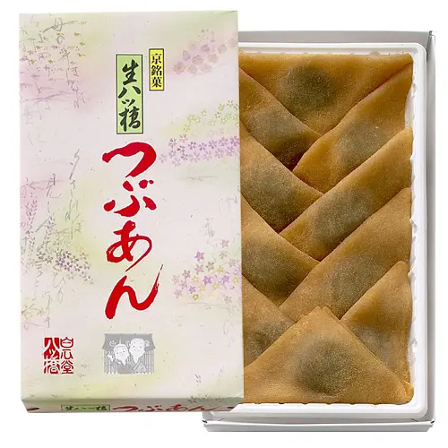 Unbaked yatsuhashi, a Kyoto specialty, features a delicate dough with a subtle cinnamon fragrance and fine Kyoto soybean flour, filled with smooth red bean paste made from Hokkaido-grown azuki beans.