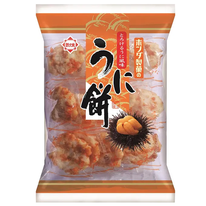 Rice (domestic), vegetable oil (rice oil), glutinous rice flour (from Thailand), sea urchin seasoning (soy sauce, dextrin, sugar, sea urchin seasoning, sea urchin paste), starch, sugar, fermented seasoning, powdered wheat seasoning, salt, yeast extract, processed starch, seasoning (amino acid, etc.), antioxidant (oryzanol, vitamin E), coloring (carotenoids), flavorings, spices, (some of which contain wheat, eggs, milk ingredients, squid, soybeans)