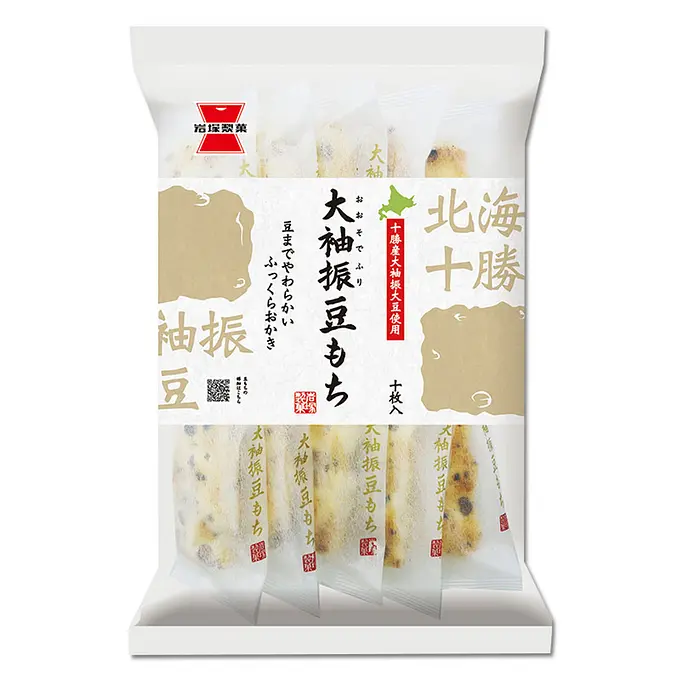 Soft and chewy rice crackers kneaded with "Oosoburi Soybeans" grown under contract in the Tokachi Plain of Hokkaido. The salt flavor enhances the deliciousness of the fragrant soybeans and rice.