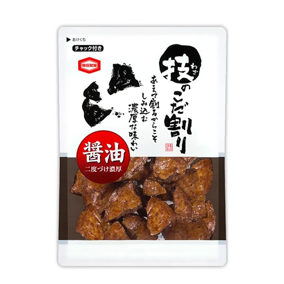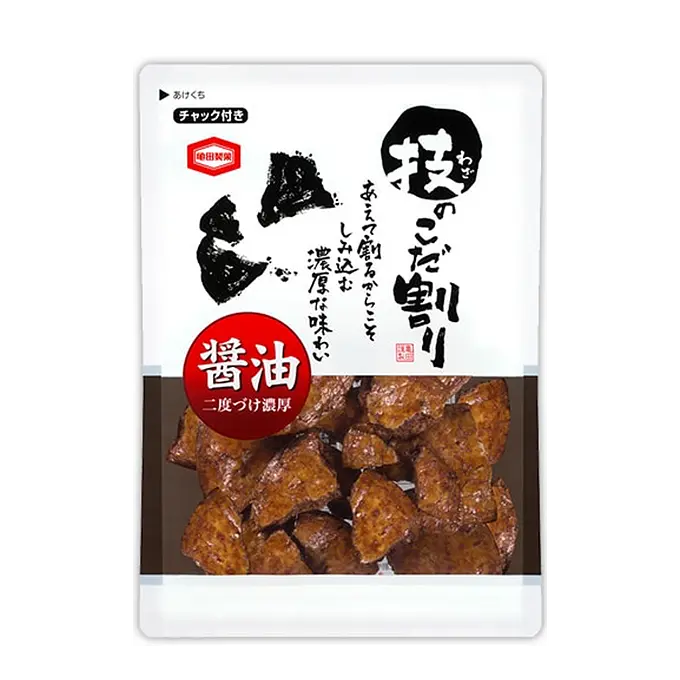 The round rice crackers are intentionally broken into pieces to make them "easy to pick up and eat. Each piece has a different shape and size, so you can enjoy a variety of different gustatory sensations.
