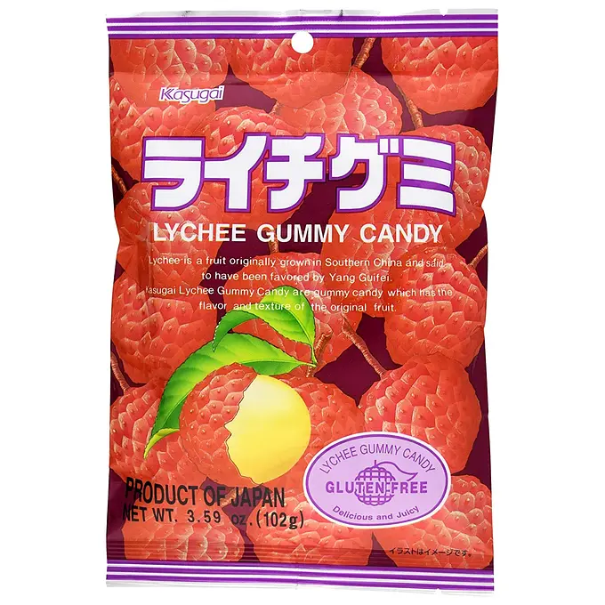 Lychee-flavored gummy bears with a rich fruity taste.