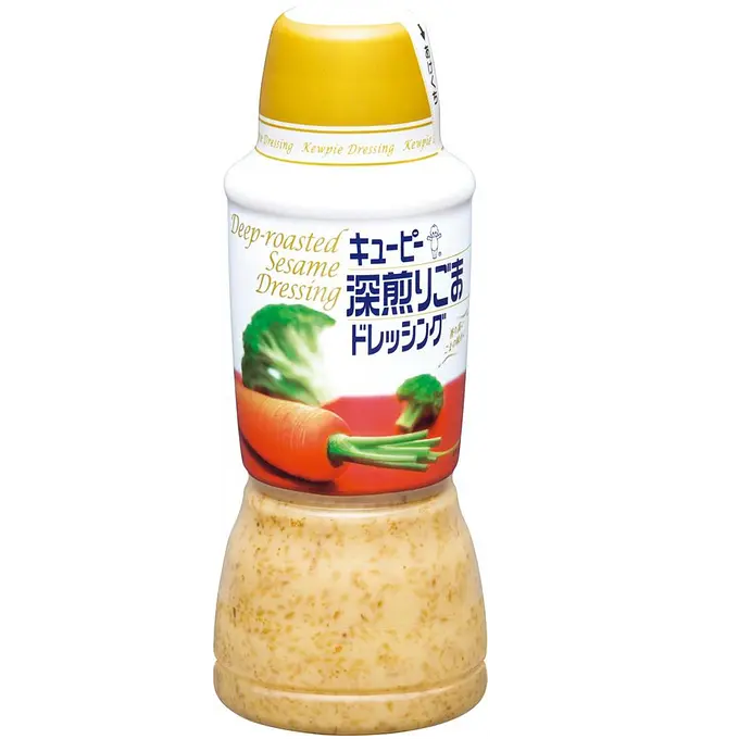 Edible vegetable oil and fat (manufactured in Japan), soy sauce, sugar, vinegar, sesame, shiitake mushroom extract, salt, egg yolk/spice extract, seasoning (amino acid), thickener (xanthan gum), sweetener (stevia), (contains egg, wheat, sesame, soy, apple)
