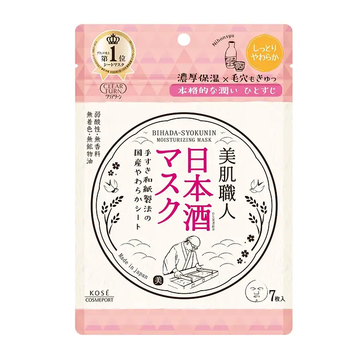 Kose Clear Turn Moisturizing Mask Bihada Shokunin Sake Essence 7Pcs