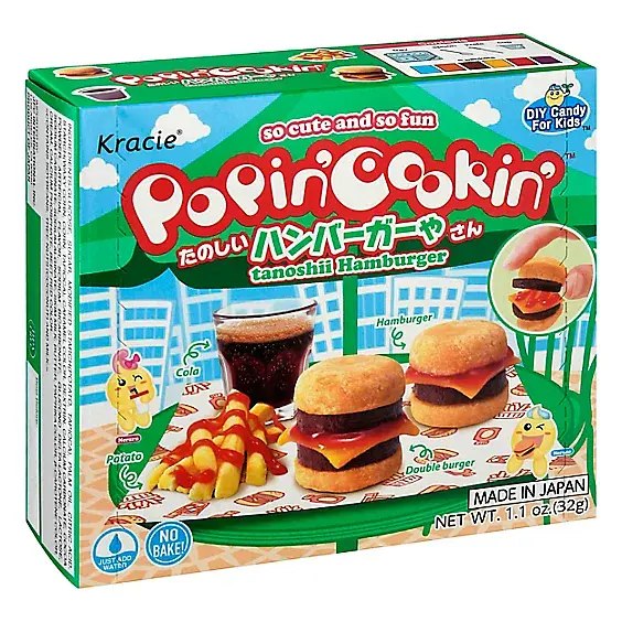 Kracie's DIY candy kits are a fun and interesting way to make familiar dishes as miniature foods from delicious candy materials by only adding water! This is a do-it-yourself kit to make your own yummy burger meal! By mixing water and the included ingredients, you can stir and shape this kit into a tasty burger meal with fries and soda on the side. The package includes all the necessary ingredients, tools and instructions - just add water and creativity! This kit is great fun for both children and adults!