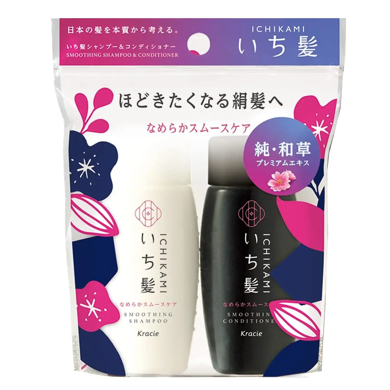 Thinking about Japanese hair from the essence. From the hair care brand "Ichikami" comes a set of "Smooth Care" shampoo and conditioner in a convenient mini size for carrying in a pouch.