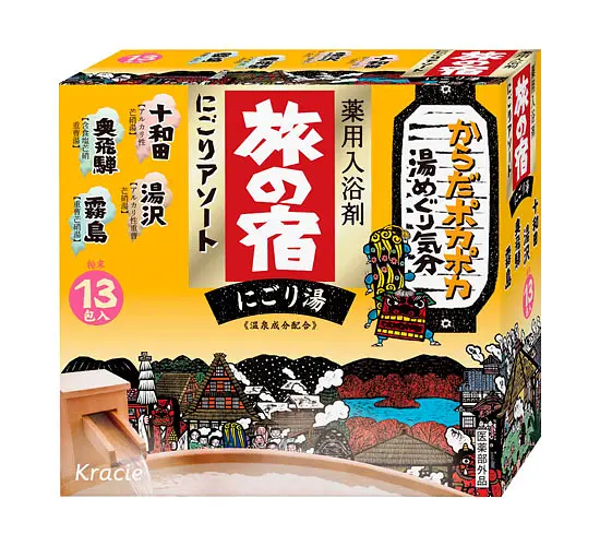 This "Tabi-no-Yado Assortment - Nigori" contains 25g x 13packets of powder-type bath salts named after each hot spring resort.