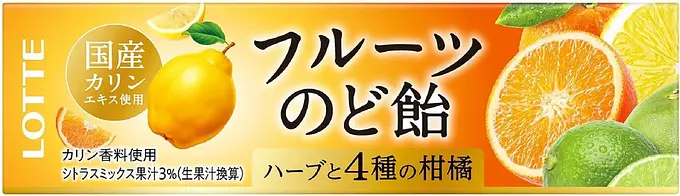 Lotte "Fruit Throat Candy" with Carin Extract. Formulated with vitamin C, the refreshing taste of orange and pleasant coolness spreads into your mouth to bring you a refreshing mood. The "Fruit Throat Candy" is a lotte that allows you to enjoy the refreshing taste of orange while gently soothing your throat with Karin and Herbs. With Vitamin C formula, you can keep it close to your body everyday and keep you protected and in the best condition of emergencies.