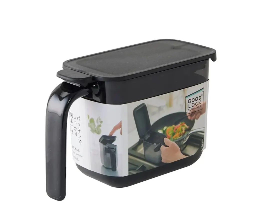 The lid opens to the back with one touch, making it easy to see what's in your hand and allowing you to quickly scoop out seasonings.