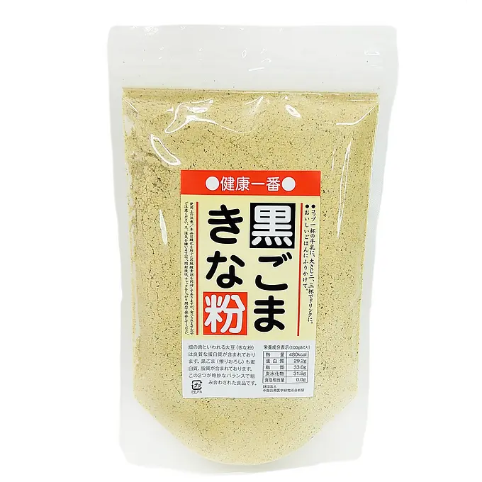 Soybean flour with black sesame seeds.