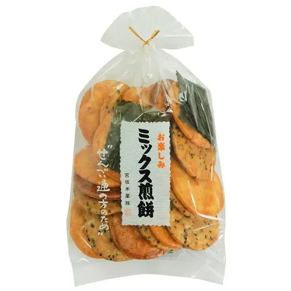 Ingredients: Non-glutinous rice, soy sauce, sesame, sugar, starch hydrolysate, roasted seaweed, fermented seasoning liquid, dried bonito extract, starch, miso, starch syrup/thickener (modified starch), coloring (caramel I), seasoning (amino acids, etc.), flavoring, (contains wheat, sesame, soybeans)