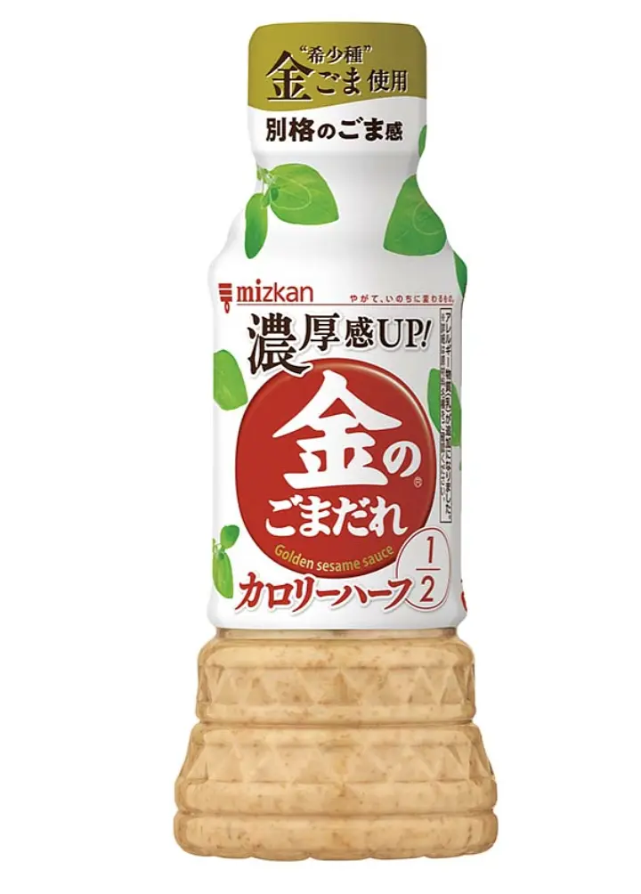 This is a half calorie type "sesame sauce" with 50% less calories than "Golden Sesame Sesame Sauce", while maintaining the flavor and texture of "ground sesame".