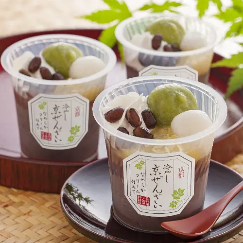 Chilled Zenzai" filled with the Japanese spirit of Kyoto. It is made with a Monde Selection Gold Award winner red bean paste "an", and lavishly topped with dumplings, chestnut red bean paste, and whipped cream. This is a popular dessert unique to Kyoto that has a traditional yet modern flavor.
