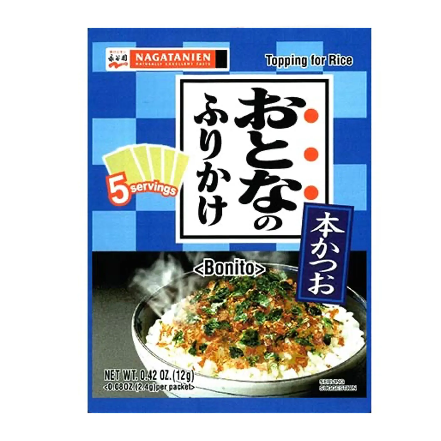 "Furikake" can even be used for salads and sautés. Each package contains five small packets. It’s convenient to carry anywhere! Bonito is a type of fish with a taste similar to tuna.