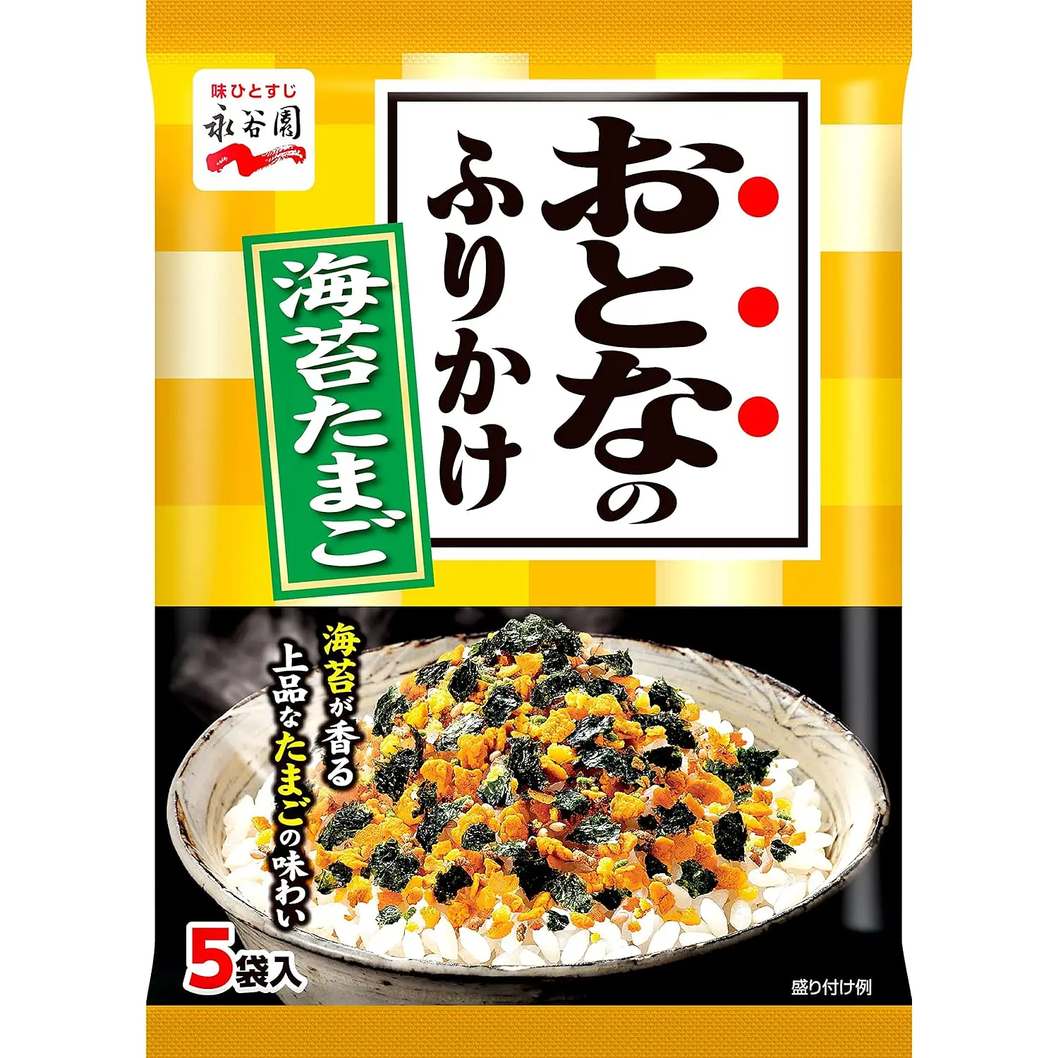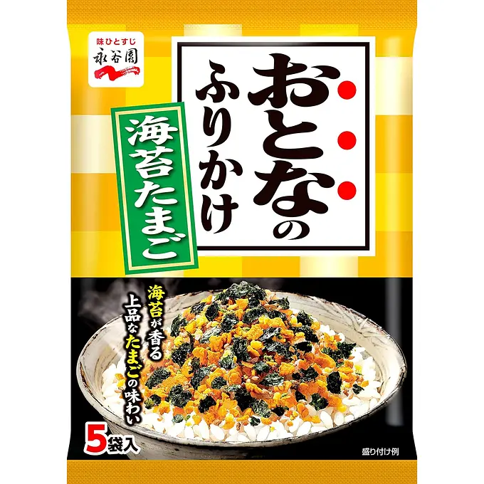 This furikake is made with a generous amount of carefully selected, delicious nori seaweed, and is sure to satisfy both adults and children. The furikake with the aroma of laver and egg flavor is combined with the flavors of bonito and soy sauce, reminiscent of egg dishes, to create a furikake menu that only "furikake for adults" can offer. The product comes in packets, so you can enjoy the taste of freshly opened furikake anytime.