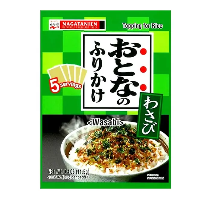 "Furikake" can even be used for salads and sautés. Each package contains five small packets. It’s convenient to carry anywhere! "Wasabi" is not too hot. Enjoy the flavor of wasabi.