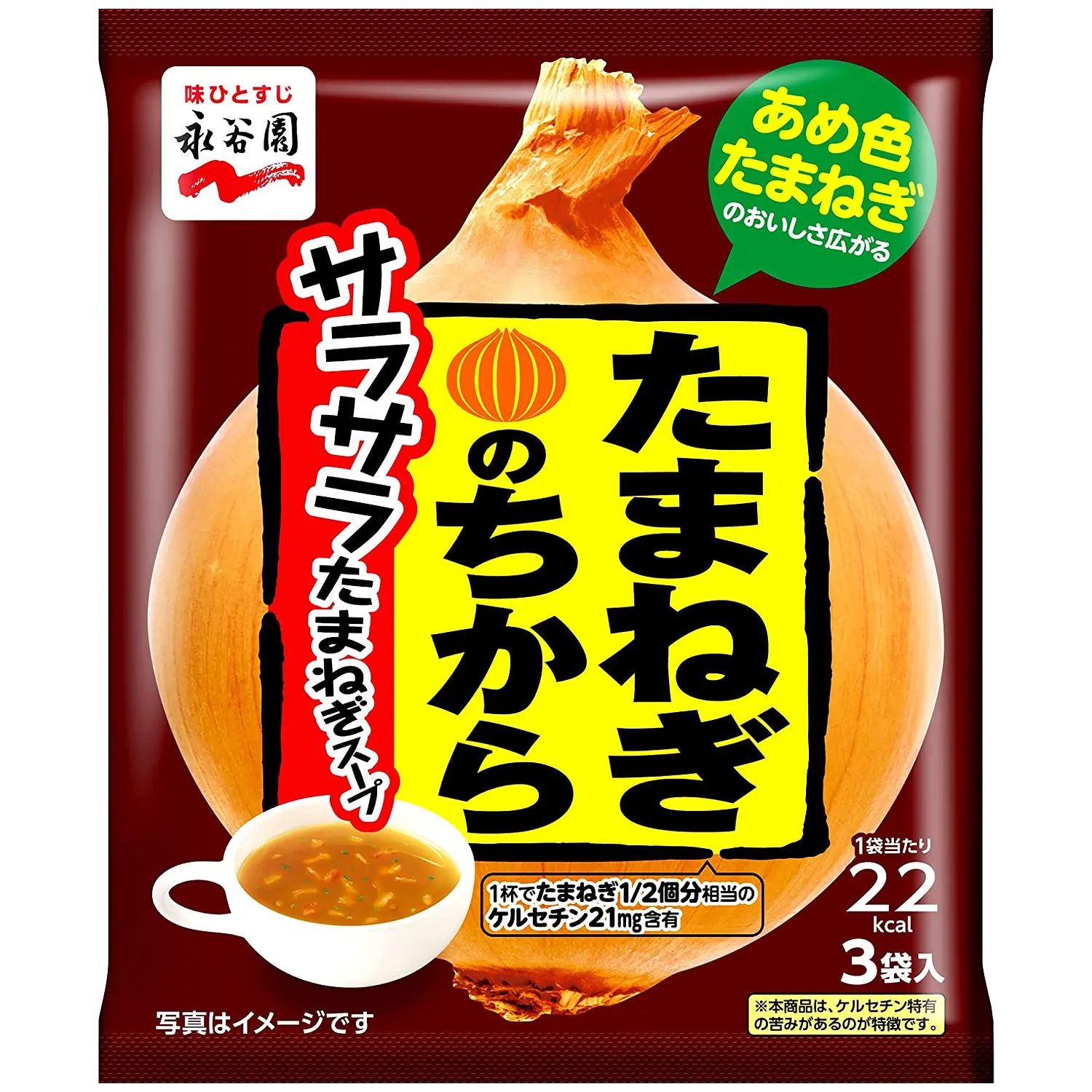One cup of this onion soup provides quercetin equivalent to 1/2 an onion. It has the sweetness and richness of onions. Ingredients include roasted onions and parsley. Recommended for people who are concerned about their lifestyle, want to enjoy their daily meals, and want to stay young.
