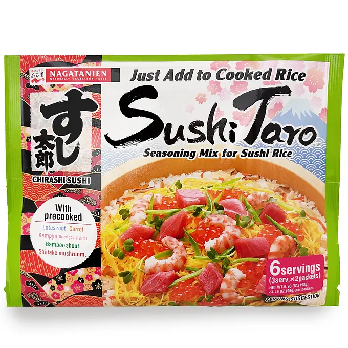 "Taro"is a traditional boy's name in Japan."Sushi Taro" allows anyone to make authentic Japanese "chirashi sushi" at home in a simple and easy way. "Sushi Taro"can even be used for sushi rolls and "inari-zushi". It contains five vegetables, sushi vinegar, seasoning.