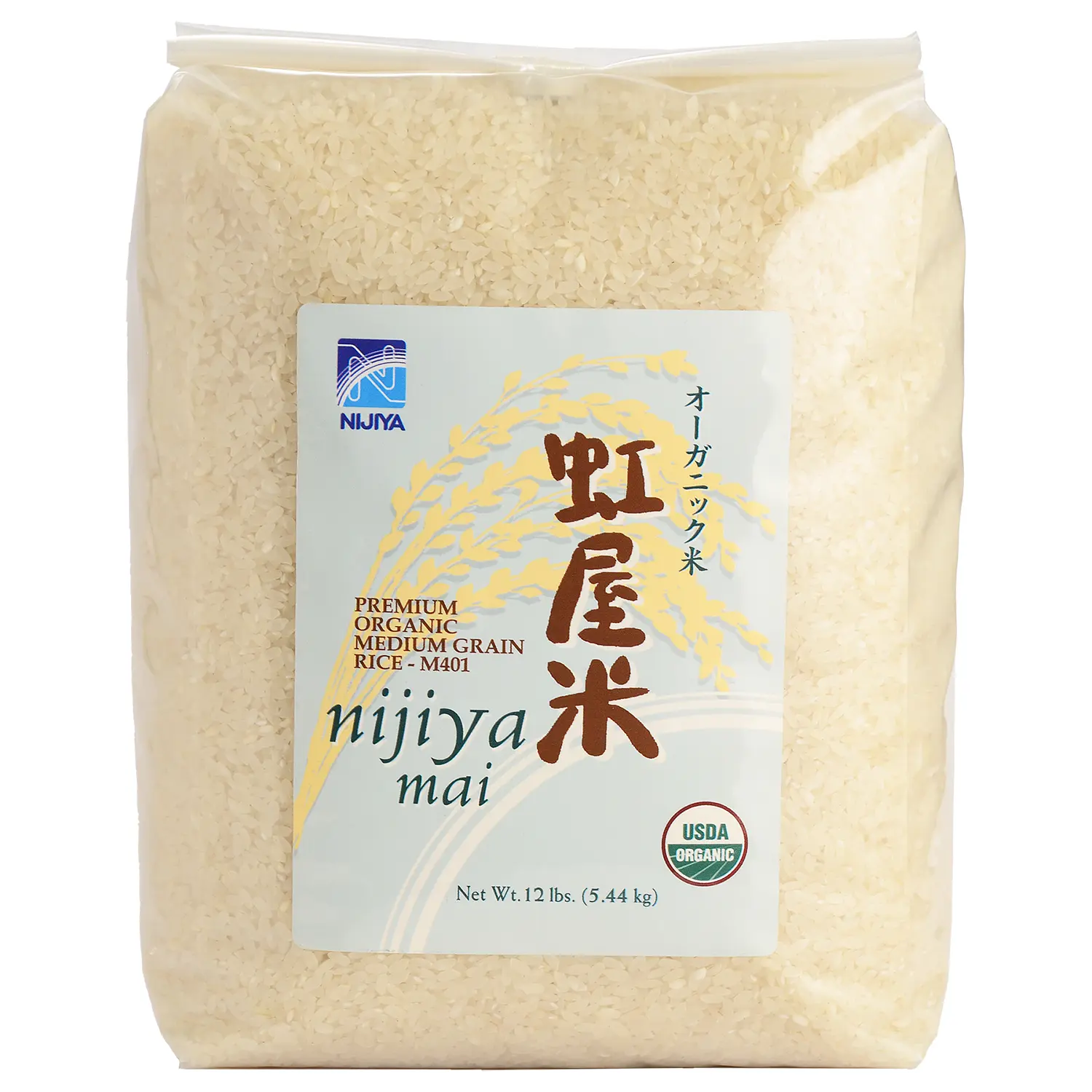This Nijiya Rice is a medium-grain rice with a light texture.