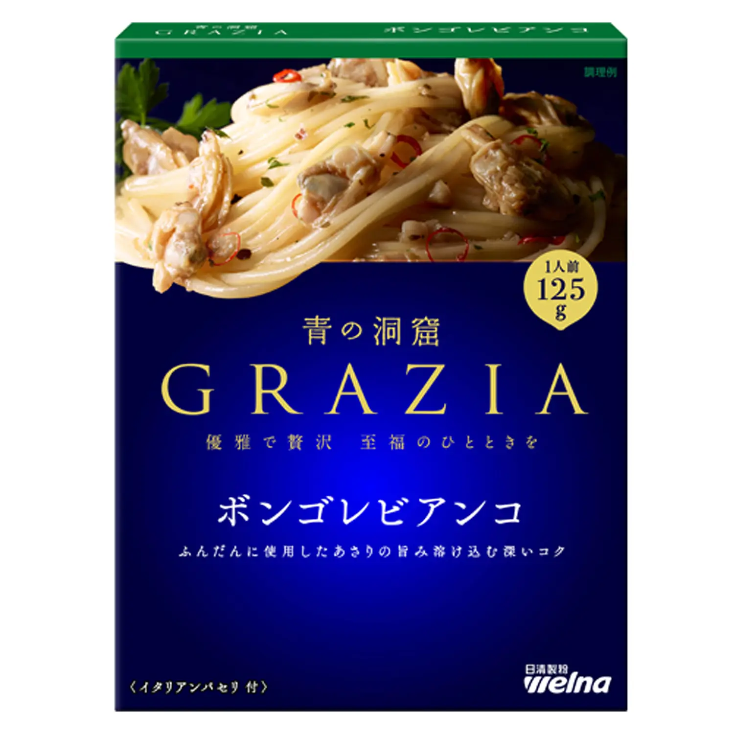 From the "Aono Doukutsu" series, where you can enjoy authentic Italian cuisine at home, "Grazia Vongole Bianco" is rich and full-flavored to the last bite, infused with the flavor of abundant scallions. The rich flavor of the extra virgin olive oil and garlic is also present in this dish. Enjoy a moment of elegance, luxury, and bliss.