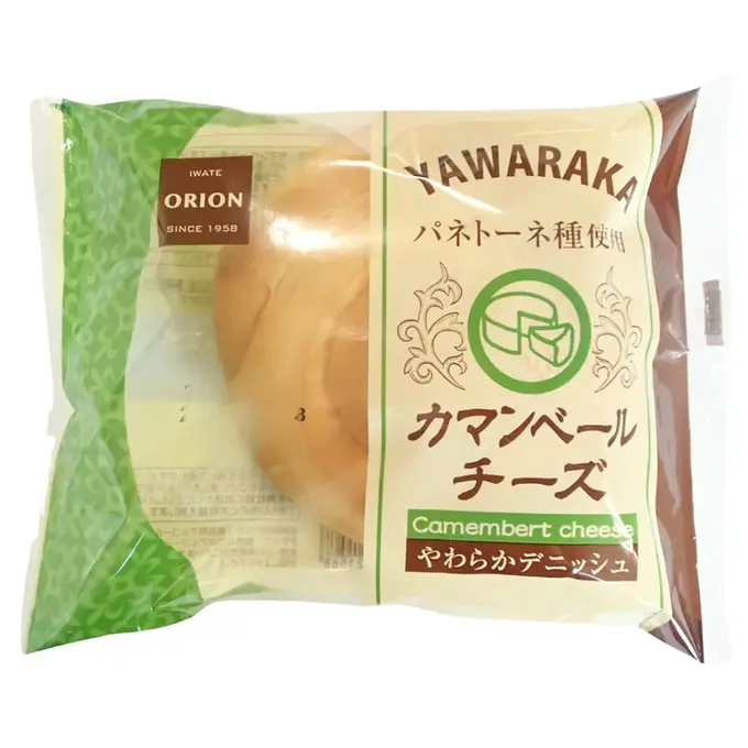 A Danish pastry made with natural yeast, layered with a Camembert-flavored cheese sheet.