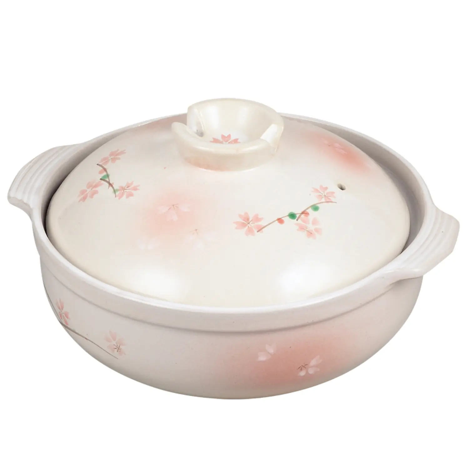 Earthenware pot No. 9, for 4-5 persons, with a light cherry blossom pattern that is uniquely Japanese.