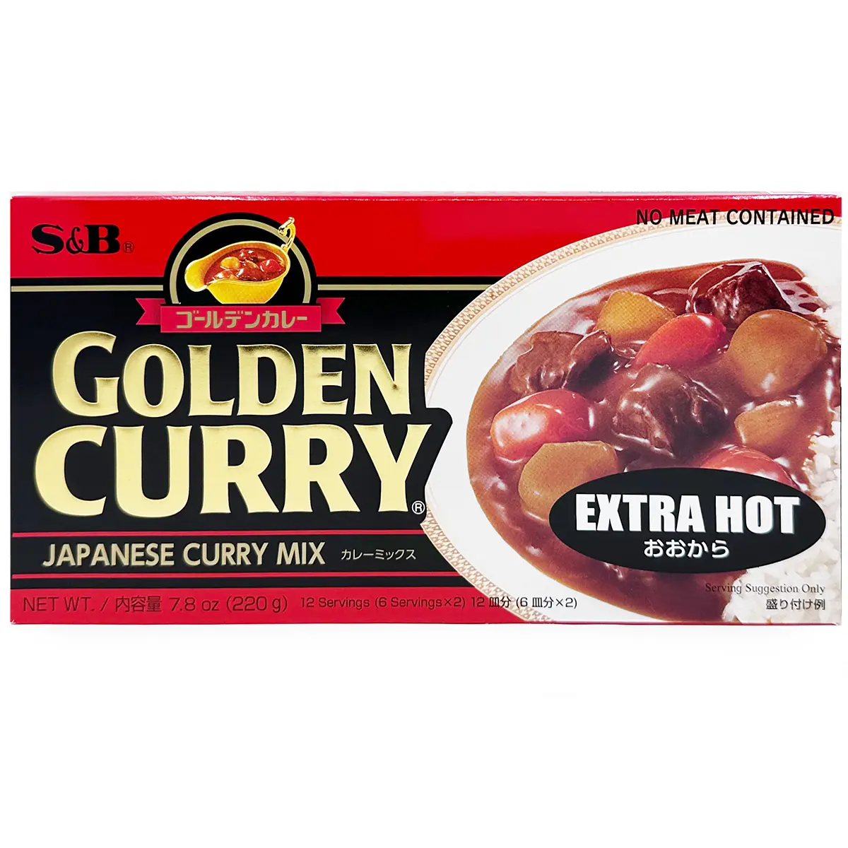 A block of Golden Curry Mix consisting of curry powder, flour, spices and seasoning could quickly transform mundane stew into fine curry simply by adding them to the mixture. Spicier than hot. It has good balance of rich aroma and spiciness. S&B Golden Curry Mix contains no meat or meat derived ingredients.