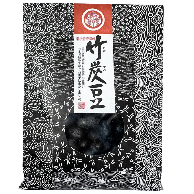 These are bamboo charcoal beans from Tokunaga Seika, a bean confectionery specialty store founded in 1869.