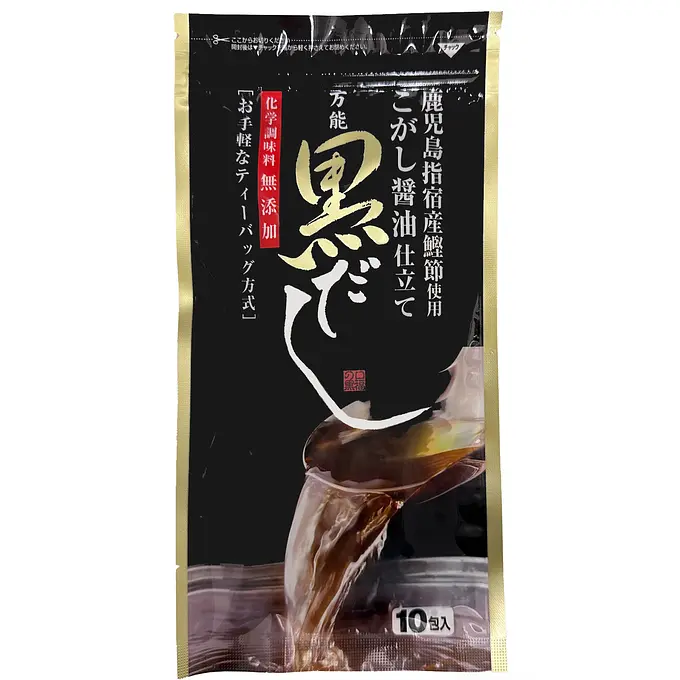 This packaged dashi has a rich flavor created by adding bonito flakes from Kagoshima Prefecture, kelp from Hokkaido, shiitake mushrooms grown on logs in Japan, sardine, mackerel, and soda shavings, and is seasoned with kogashi soy sauce, salt, and sugar.